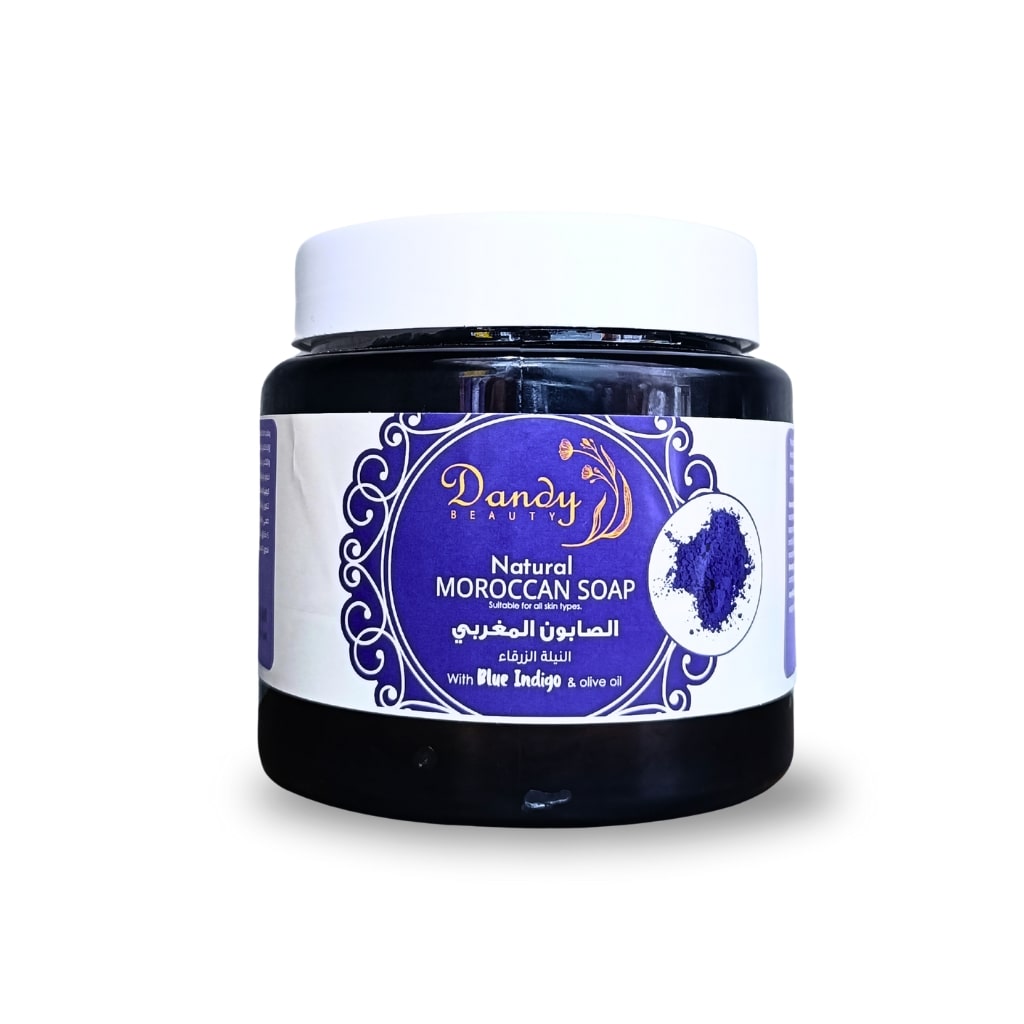 Dandy Beauty Moroccan Soap with Blue indigo & Olive Oil 500ml cleanses and hydrates the skin, thanks to the soothing properties of Aker Elkassi and moisturizing olive oil. It leaves the skin soft, smooth, and refreshed, making it ideal for daily use on all skin types.