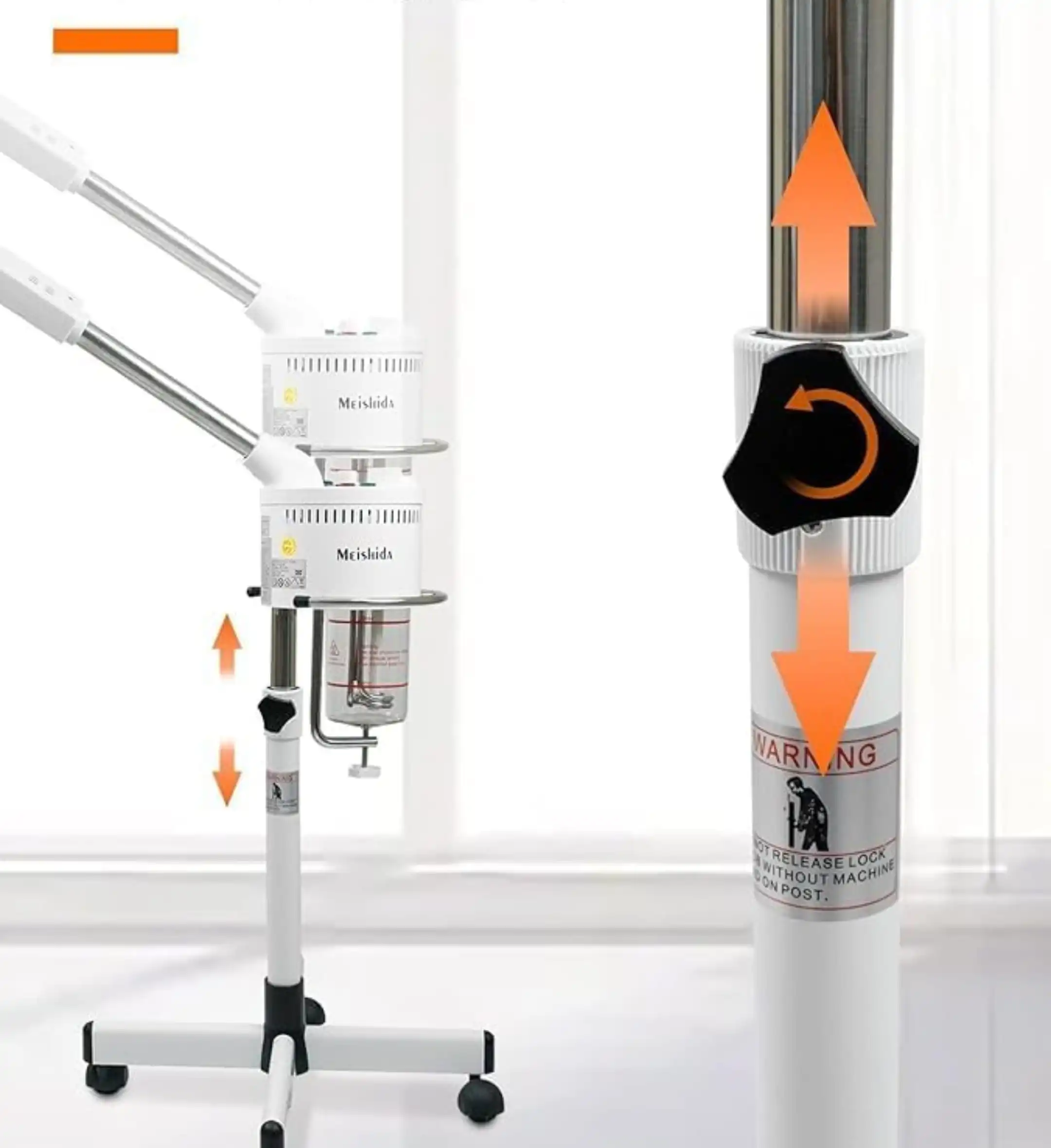 - Enjoy the flexibility of a 360-degree rotatable nozzle, an adjustable height range of 36-52 inches, and smooth-rolling wheels for hassle-free maneuvering.